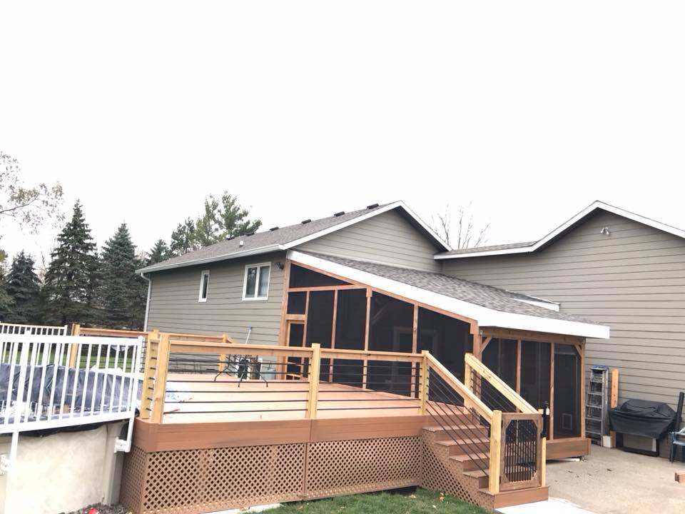This deck included connecting a pool, hot tub and outdoor entertaining area. A great place to enjoy the beautiful summer weather.